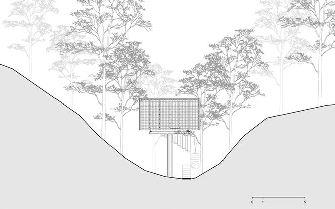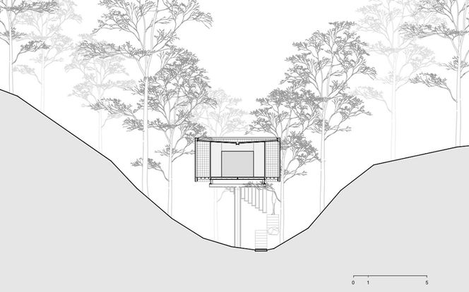 Concebido como um refúgio do arquiteto, procurou-se com este projeto, desde esta condição, realizar algumas experiências construtivas, com o objetivo de conciliar diferentes desejos: de reduzir o custo de obra; de preservar a topografia existente; de elevar a construção do solo; e por fim, estabelecer uma relação espacial singular entre o interior e o entorno imediato.